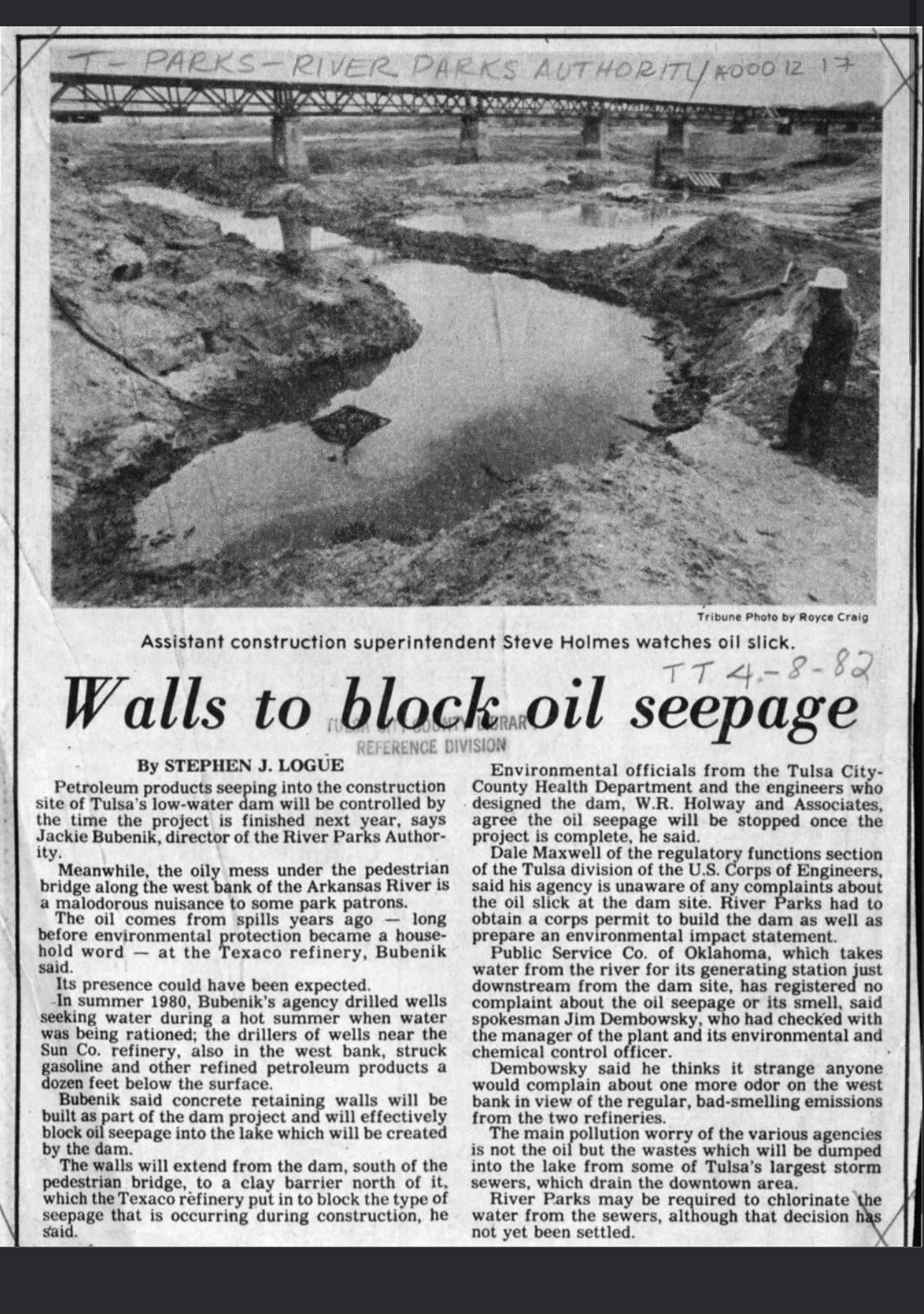 During permitting for the original Zink Dam in the late ‘70s, River Parks Authority planned to dump and refill Zink Lake when pollutants exceeded water quality standards.